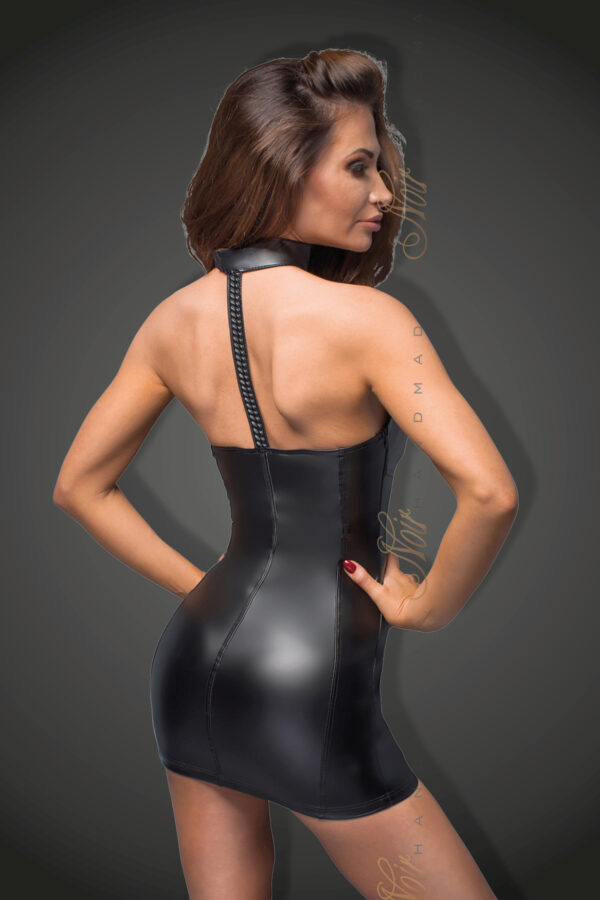 Mini powerwetlook dress with eco-leather cups and tape. Fancy eco-leather tape on the back that's fastened with a double clasp. There is a zipper on the side for your comfort. The article is packed in a paper glossy box with image. Care instructions: 30 degree hand wash Color : black Material : 80% poyamid / 20% elastan, coating: polyurethaneAvailable Size : S to 3XL | size chart Please note that images can be similar and we assume no liability for product information.Key features