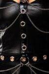 Mini dress made of elastic wet look material and metal elements. The bottom chains have small wefts to offset the chain. A side zip makes it easier to get into the product. Safety note: The chains tear from a certain tensile force. This is not a reason for complaint! The item is in a box with a picture. Care instructions: 30 degree hand wash Color : black Material : 80% polyester / 20% elastane Available Size : XS, S, M, L, XLKey features