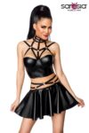 delivery: skirt, toptype of fabric: Wetlook sexy wetlook set made from our new Powerlastic Wetlook fabric cropped top with adjustable multistraps cups with brackets hook and eye closure at center back mini skirt made of elastic material end consumer packaging with image best SARESIA quality The article is packed in a paper glossy box with image.Care instructions: 30 degree hand wash Color : black Material : outer fabric 1: 100% polyurethane, outer fabric 2: 90% polyester, 10% elastane, bands: 85% polyester, 15% elastaneAvailable Size : XS-S, M-L, XL-2XL | size chart Please note that images can be similar and we assume no liability for product information.Key features